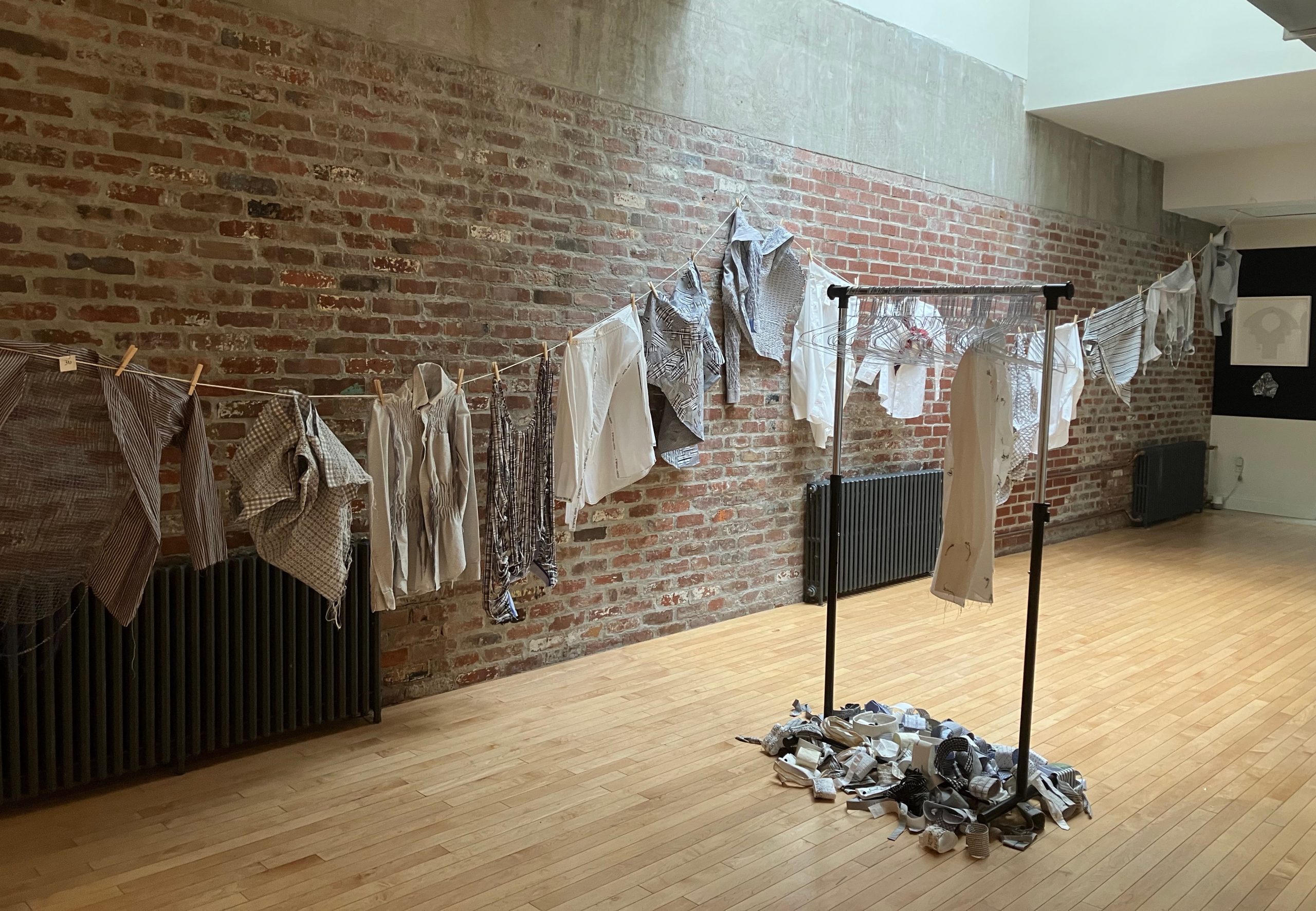 Through my iterative intervention into menswear, I have created an army of 100 deconstructed and rebuilt shirts. I’ve also developed work to use my scrap – including collage, quilt, soft sculpture and accessories. As a ‘nose to tail’ artist of opportunity, I work in a mix of repurposed, new and soluble materials using a combination of deconstruction, sewing, embroidery, weaving and wire work. I start each piece by asking my self ‘What if…’